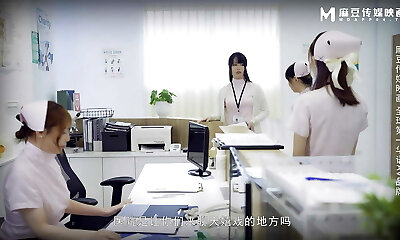 MD0180 - Creepy Doctor Convinces Two Young Asian Medicals Intern to Fuck to Get Ahead - Threesome Bang-out