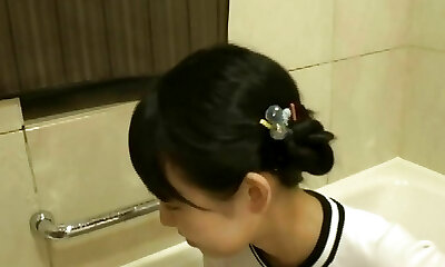 Pretty Asian angel with slim body Tsukasa Arai sits in bathtub