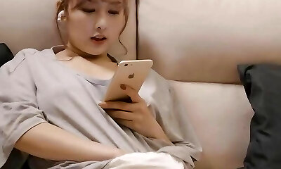 Blonde slut young Chinese girl with uber-sexy undergarments teasing brother and her wet pussy got fucked so hard