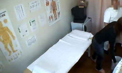 Skillful doctor massages a cool gal on a spy camera